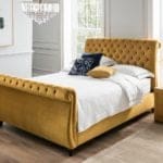 Firstly this bedframe offers a beautiful buttoned back and footboard that mirrors the stunning headboard. Secondly the Chesterfield comes in a variety of leg options such as Oak, Natural, Wenge or Silver.