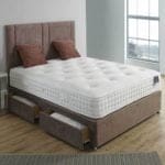 The Highgrove platform luxury divan base is available in a range of fabrics and is supplied on chrome glides.