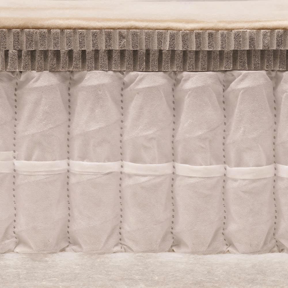 Combined with ReActivePro™ pocket springs with 8 active turns and Triple Edge Protection™ to provide an unrivalled feel with sumptuous body support. With a smart hand tailored border with two rows of genuine hand side-stitching for support across the surface of the whole mattress. Wrapped in Hypnos’ signature unbleached cotton fabric, responsibly sourced and free from FR chemicals.