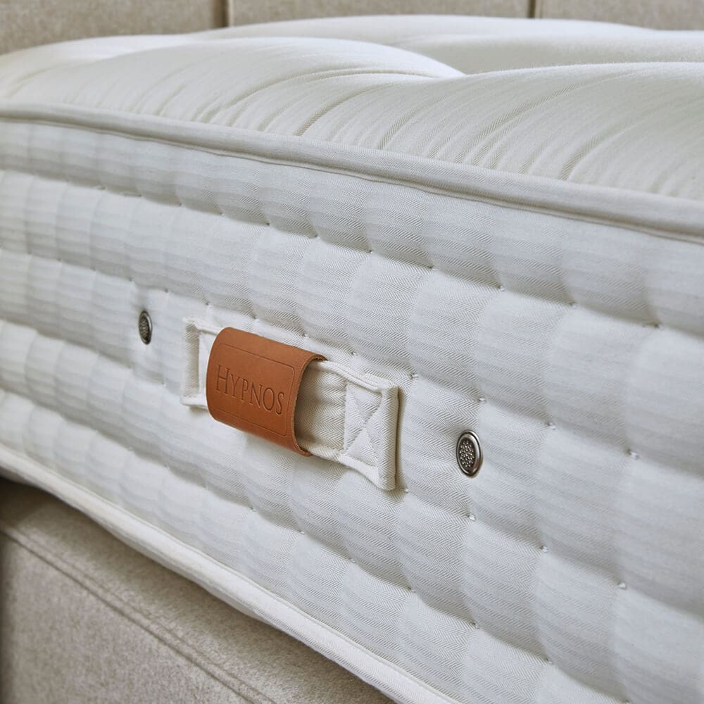 Inside, the ReActivePro™ 7-turn pocket spring system with Triple Edge Protection™ provides tailored support and minimises partner disturbance. Each mattress is hand-tufted with two rows of genuine hand side-stitching, reflecting the craftsmanship that Hypnos is renowned for.
