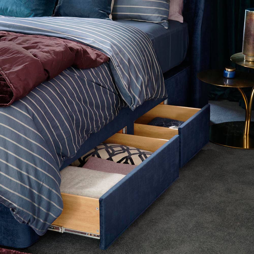 Choose a traditional deep divan base with chrome castors as standard. A deep divan can also include practical hidden storage.