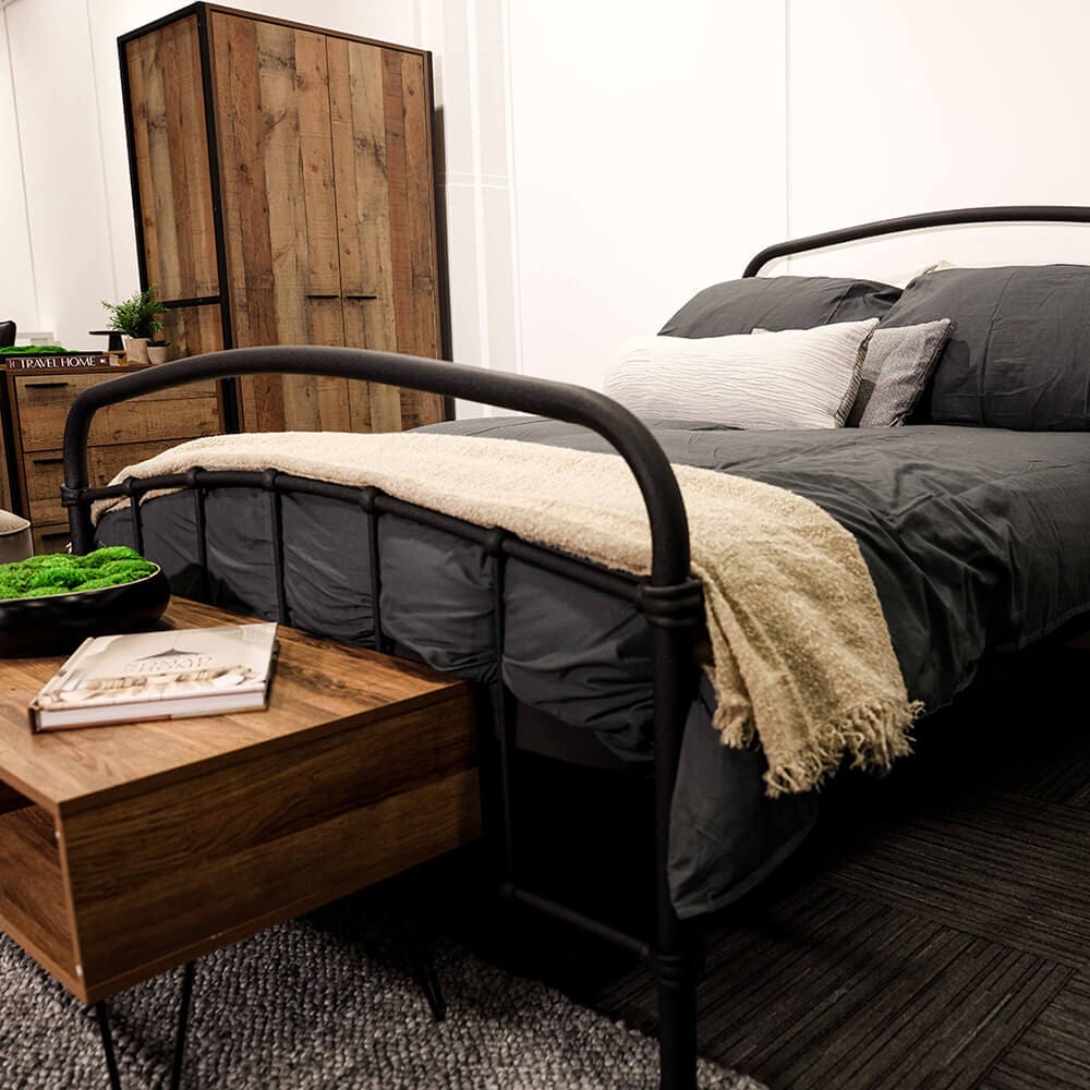 The Halston Bed offers the perfect solution for those wanting to inject some industrial style chic into their home. This traditional design has subtle casting details and ornate features that are complemented by the matching curved rails on the head and foot boards. Gently curved sprung slats enhance comfort and make up the base of the frame. With a strong and sturdy metal frame in a black effect painted finish, it’s a fantastic choice for both modern and traditional bedrooms.