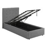 The Lucca Plus Bed in Soft Grey offers a luxury feel at a very comfortable price. Enveloped in a classic linen-type upholstered with coordinating button detail to the headboard, this simple and understated bed frame wouldn’t look out of place in a contemporary or vintage designed space. When space is at a premium, this versatile ottoman bed provides an impressive storage capacity simply by lifting the hydraulic assisted mattress base ensuring the clean lines and subtle finish of this bed will make a tranquil space out of any bedroom.