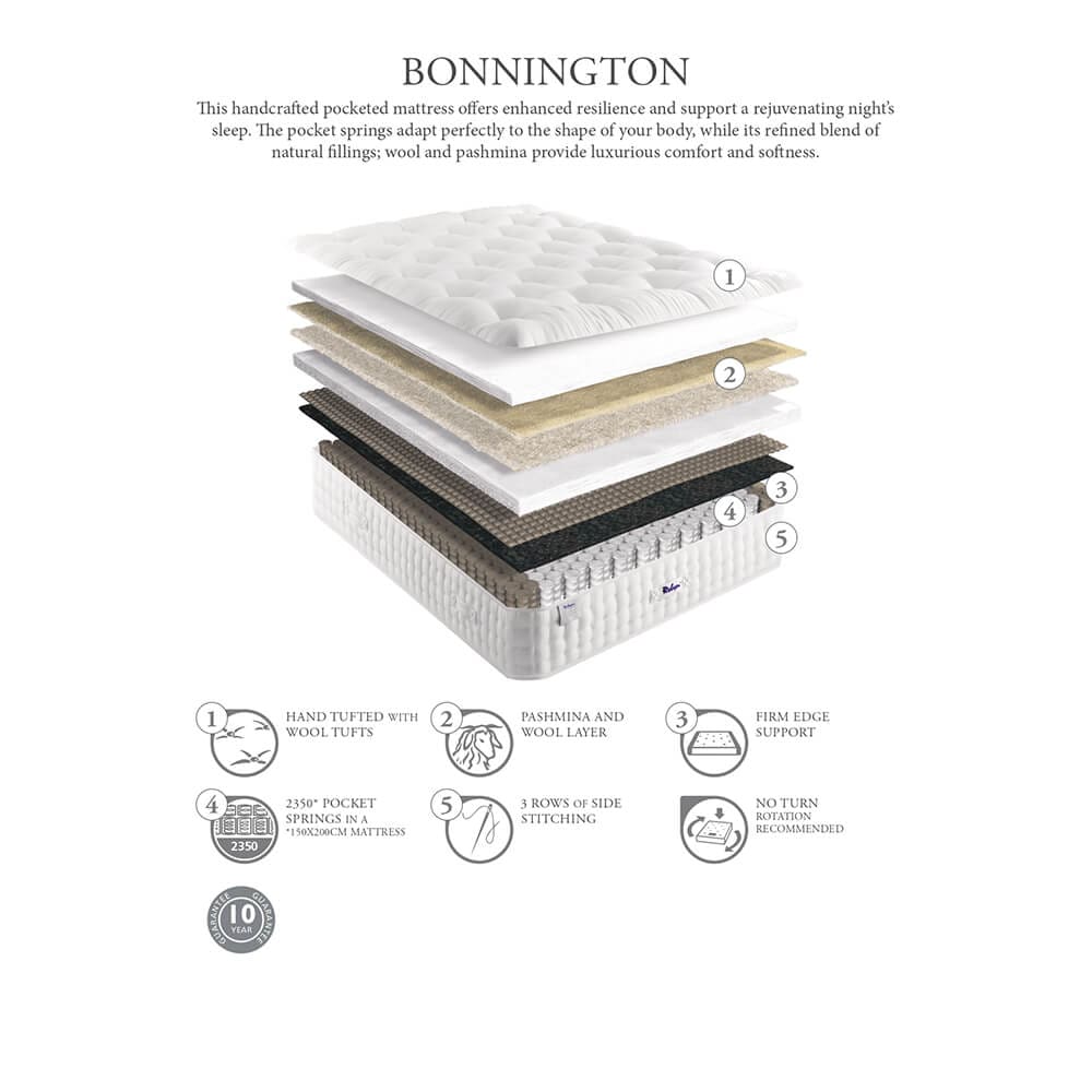 Discover the Bonnington, an exceptional offering in the ‘one size fits all’ category. This mattress features a blend of modern design and practical durability, providing excellent value. Its substantial natural fillings are supported by a responsive mini-pocket spring system for traditional comfort without the need to turn the mattress. The Bonnington delivers a balanced combination of luxury and support, making it a standout choice for quality and comfort in today’s market.