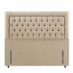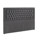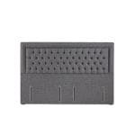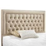 This ‘Grand’ model headboard is an opulent upholstered headboard featuring four rows of buttons and pleating arranged in a sophisticated diamond pattern framed by a plain border as the finishing touch.