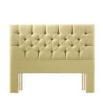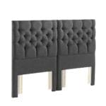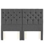 An elegant upholstered headboard featuring four rows of deep buttons and pleating arranged in a sophisticated diamond pattern.