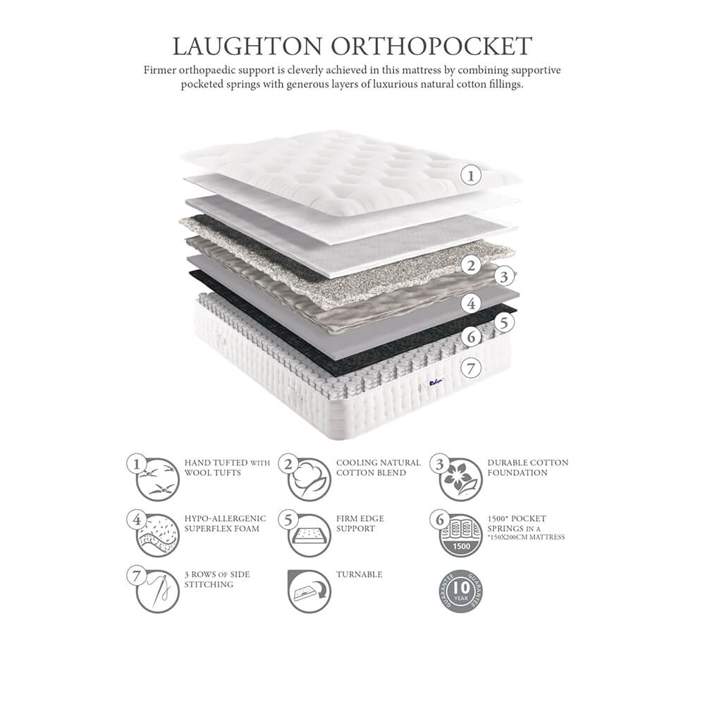 Explore the Laughton Orthopocket by Relyon, distinguished in our range as a genuine orthopaedic mattress. Built with decades of industry expertise, it combines time-honored techniques with a robust spring system to deliver exceptional support and comfort. The Laughton is crafted for those seeking true orthopaedic benefits, providing a sleep experience rooted in tradition and enhanced by quality craftsmanship. It’s a solid choice for anyone valuing dedicated orthopaedic support.