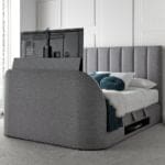 The Leon TV Ottoman is a fusion of modern design and innovative functionality, ideal for the contemporary home. It features a vertical stitch padded headend that adds a touch of sophistication and comfort to your bedroom. The slim footend, designed to fit up to a 43″ TV, transforms the bed into an entertainment hub, perfectly blending luxury with practicality.