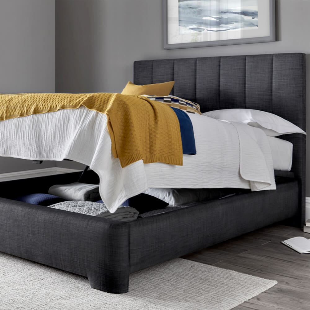 The Memphis bed combines modern design with eco-conscious living, featuring a vertical panelled headend and an elegant shape. Its ottoman storage, equipped with a hydraulic assisted lift-up system, offers spacious and convenient storage solutions.