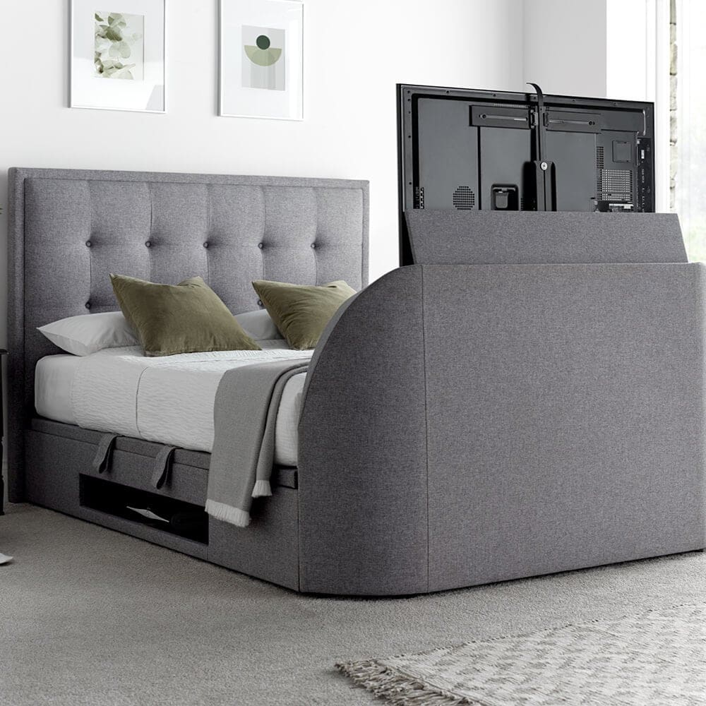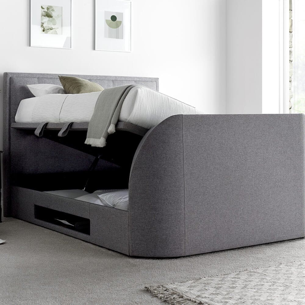 Reimagining bedroom luxury, the Sonora TV bed combines a classic design with modern features, concealing a TV up to 43″ within its structure. Its spacious ottoman storage and ventilated base offer both style and functionality, making it an ideal choice for a blend of elegance and convenience.