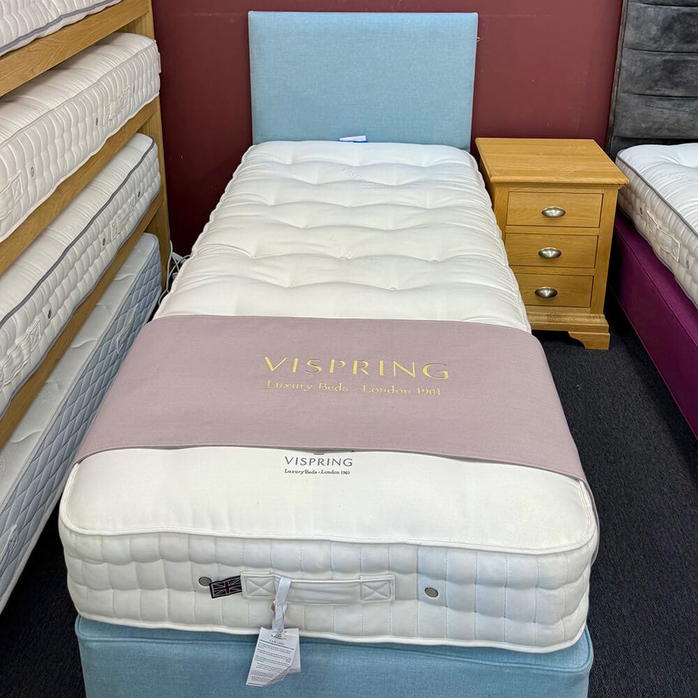 Vispring Elite 2 Drawer Divan Set With Muses Headboard Ex Display – Firm Tension – Fabric: Touch 2119 Sky