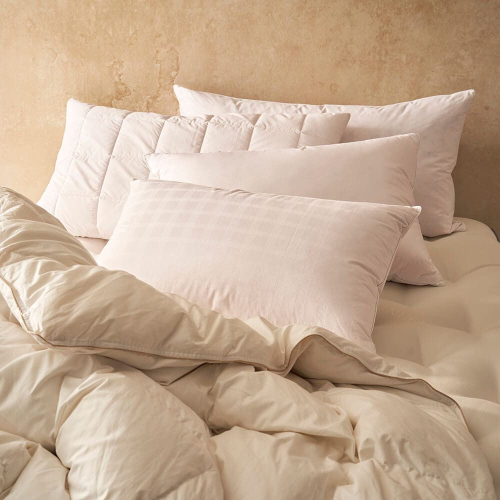 The Vispring English Duck Down & Feather Luxury Pillow delivers a sumptuously soft sleeping experience, combining premium English down with breathable natural materials for refined comfort and lasting loft.