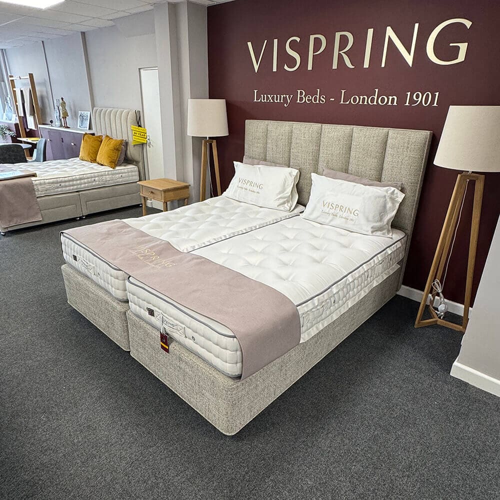 Vispring Herald Superb Zip & Link Divan Set With 2x Ceto Headboard Ex Display – Soft / Medium Tension – Fabric: Boucle 2151 Flint