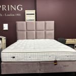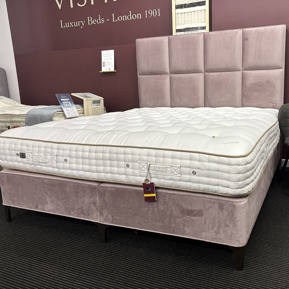 Vispring Sublime Superb Divan Set With Atlas Headboard Ex Display – Medium Tension – Fabric: Plush 2109 Heather